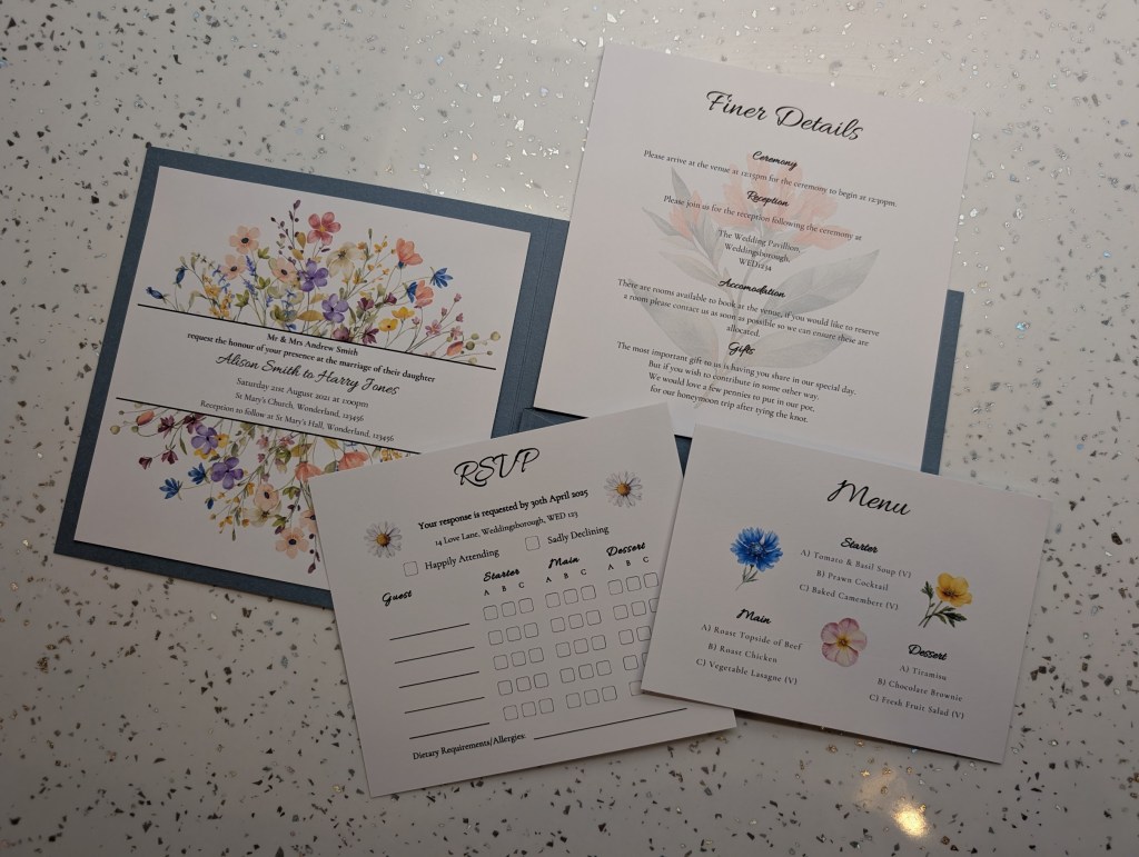 My wedding invitations have just arrived and to say I love them is an understatement, I followed my order with a lengthy message of what I would like it to included and it didnt seem too much for Alice who wrote back near enough straight away, very efficient. Very quick service. The invitations was very well packed too! Couldn’t recommend enough!