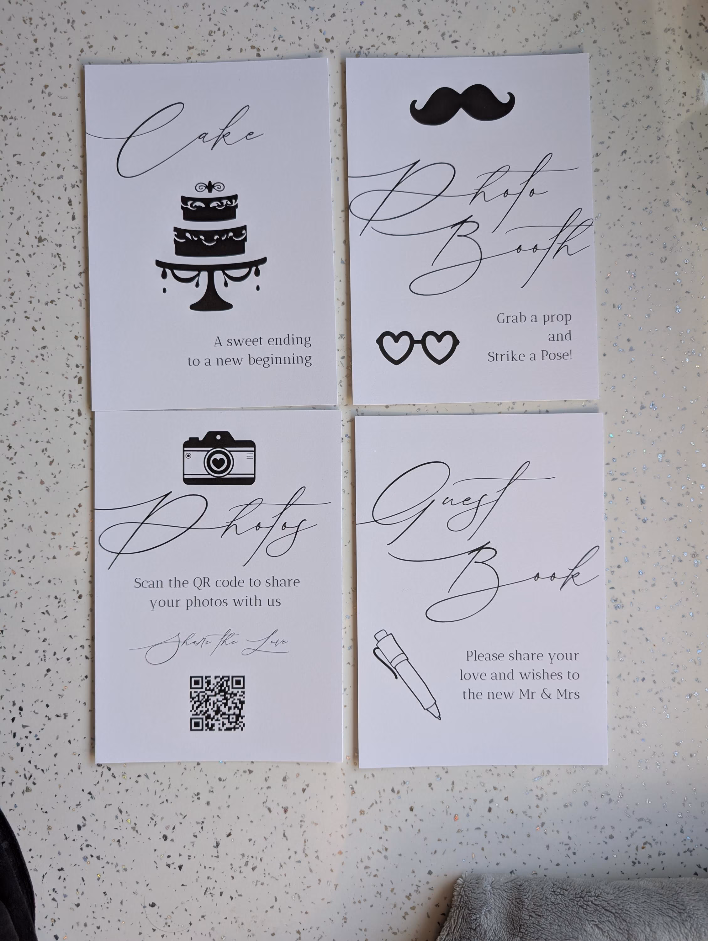 All our wedding signs are digitally printed on between 250gsm & 300gsm card (depending on colour choices).